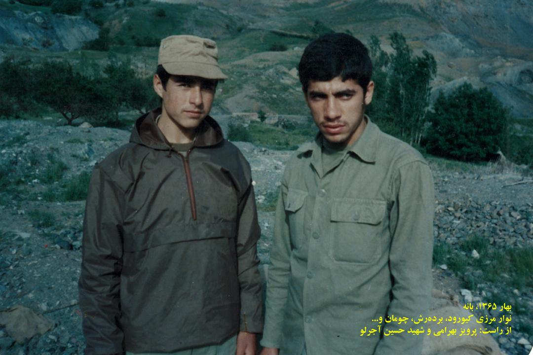 بهار 1365، نوار مرزی کیورود، برده رش، چومان و... از راست: پرویز بهرامی. ابهر و حسین آجرلو. کلنجین