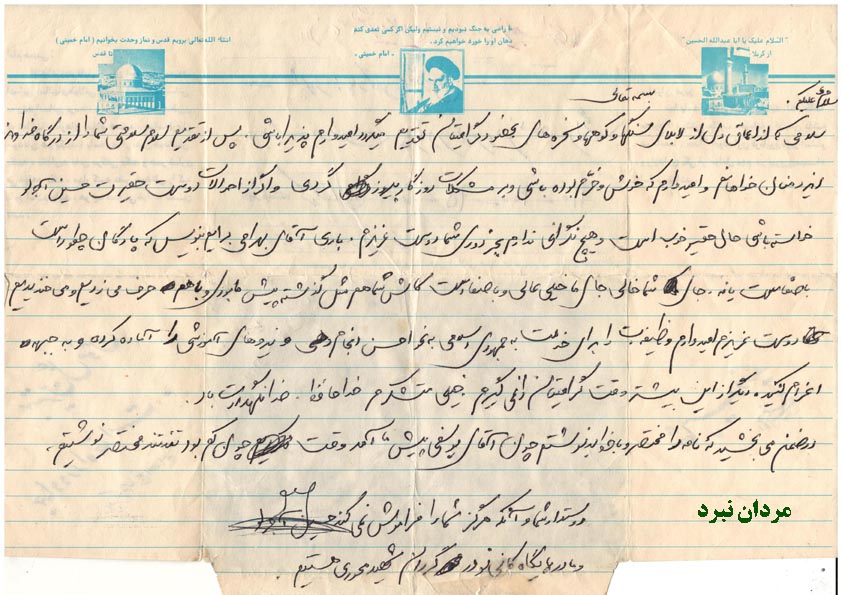 نامه شهید حسین آجرلو به همرزم خود: پرویز بهرامی به سال 1366 (چند هفته قبل از شهادت)