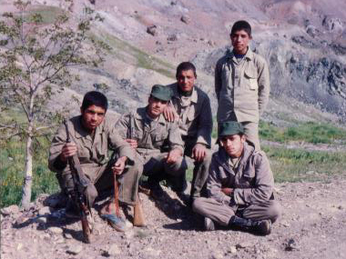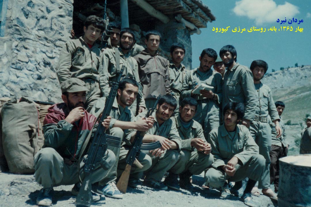 بهار 1365، بانه، روستای مرزی کیورود. نفر وسط نشسته: پرویز بهرامی