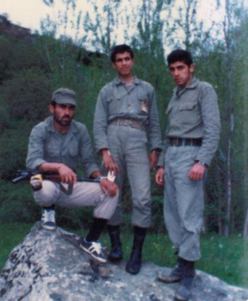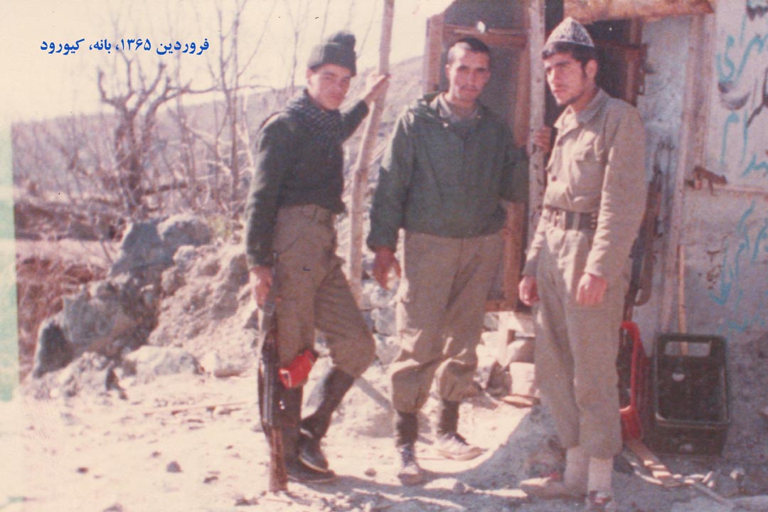 فروردین 1365، بانه، روستای مرزی کیورود. از راست: پرویز بهرامی، محمدرضا مرادخانی و غلامرضا غریبی